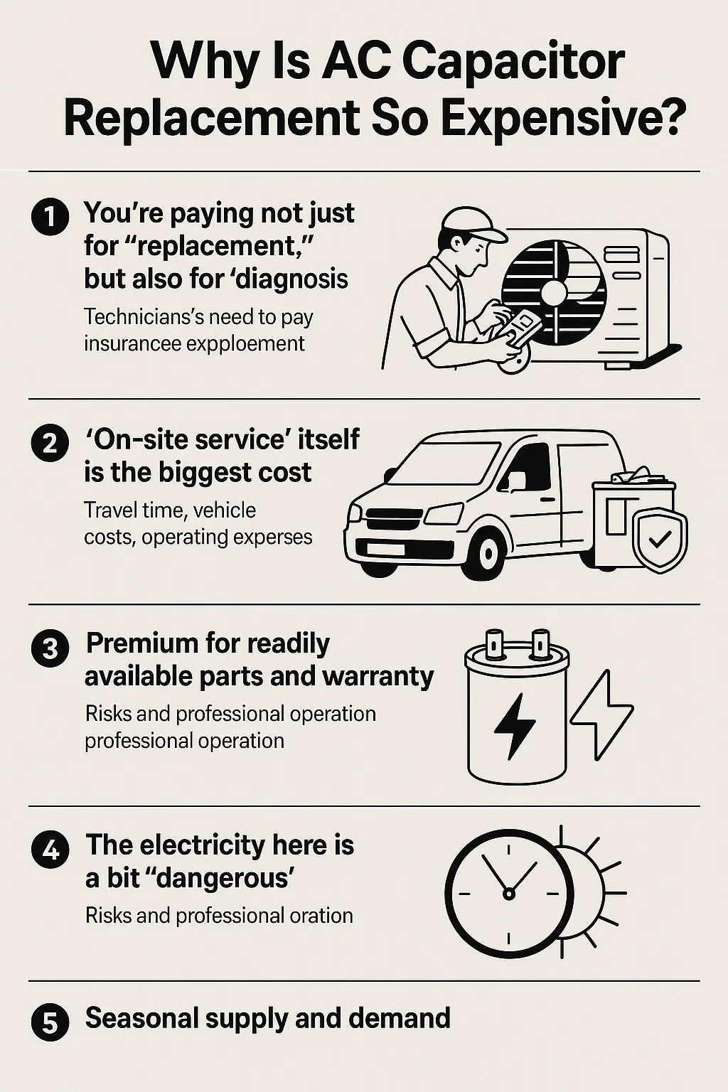 エアコンのコンデンサーを交換したことのある多くの人は、次のように疑問に思ったことでしょう。なぜこの小さな円筒形の部品、つまり ACコンデンサ – ネットで探すとすごく安いのに、業者に交換してもらうと数倍の値段がかかるんですか?